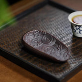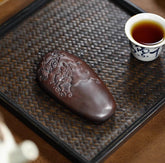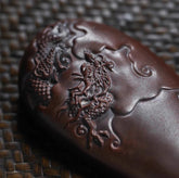 Чахе створене з глини Дзян Шуй, яка відома своєю щільною текстурою, глибоким кольором та здатністю “дихати”. На зовнішній стороні — рельєфний візерунок дракона, символу сили, благородства й пробудження. Всередині — хвилеподібна текстура, що підкреслює динаміку руху енергії «ци».