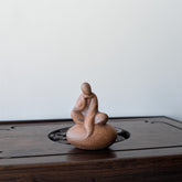 Чайна фігурка у формі медитуючого мудреця виконана з глини з приємною шорсткою фактурою. Плавні форми та мінімалістичні лінії створюють образ спокою і внутрішньої тиші. Фігурка сидить у зібраній позі, тримаючи голову на руці, ніби занурена у роздуми.