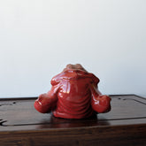 Ця яскрава чайна фігурка у вигляді посміхненого жабки-монаха створена для того, щоб приносити спокій, тепло та гарний настрій до кожної чайної церемонії. Виготовлена з якісної глини та покрита червоним декоративним вбранням, вона чудово поєднує традиційну символіку та сучасну естетику.
