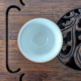 Піала з глибокою багатошаровою глазур’ю, на якій вимальовується образ гори в тумані - від темно-зелених до небесно-блакитних відтінків. Усередині - гладенька біла глазур, що дозволяє краще оцінити колір настою.