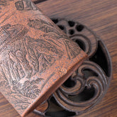 Піала з червоно-коричневої глини з темними вкрапленнями, прикрашена детальним рельєфом із зображенням Великої Китайської стіни, гір і древніх башт, що тягнуться крізь туман. Кожен штрих нагадує про силу традиції й спокій, який приходить із чашкою доброго чаю.