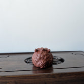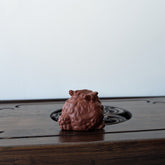 Фігурка чайного улюбленця у вигляді червоної жабки з виразним обличчям і рельєфною текстурою створена з натуральної глини. На корпусі проглядаються декоративні вогняні візерунки, що підсилюють відчуття сили і оберегового характеру фігурки. Її часто використовують як талісман для притоку удачі та захисту дому.