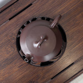 Чайник з ісинської глини Ши Хун Ляо (Сира червоний руда). Червоно-коричнева глина, еластична та щільна. Спікання відбувається за досить високої температури 1190-1210 градусів Цельсія. У результаті випалу, набуває глянсового блиску і червоно-коричневого відтінку.
